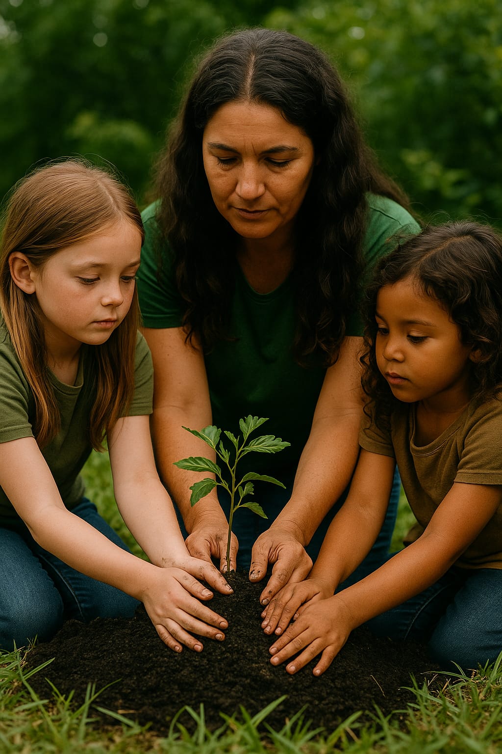 Plantio como símbolo de cura e esperança – cada árvore representa resistência e futuro.
